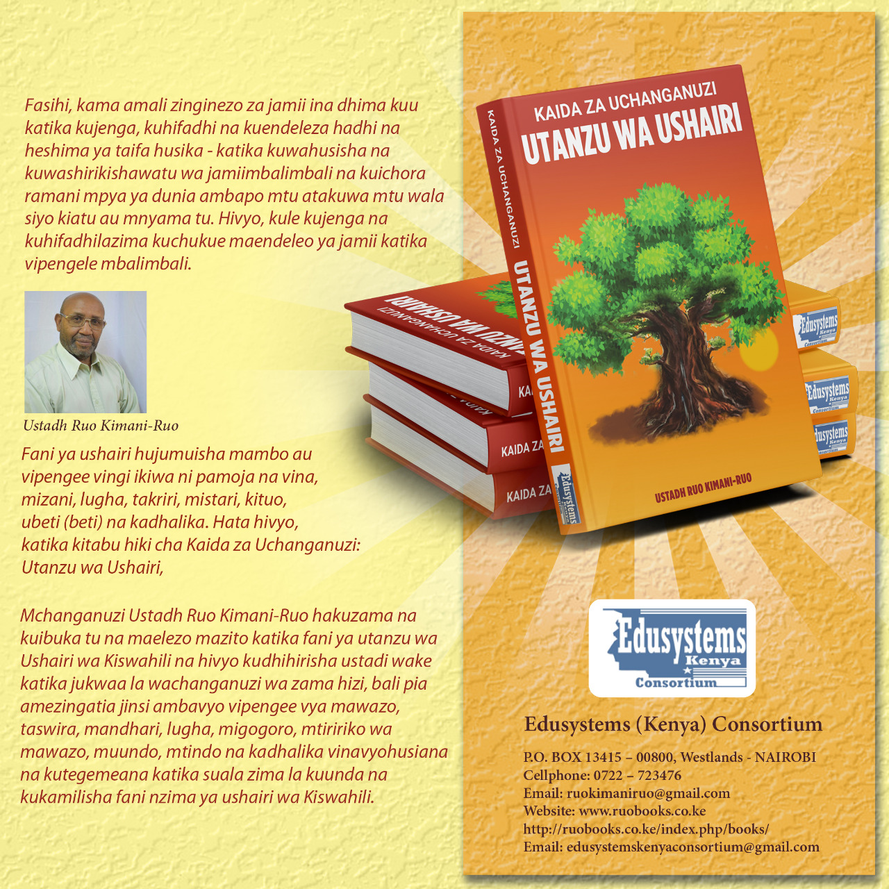As an accomplished author and editor, his works have had a lasting impact on Kiswahili education and literature. His notable publications include Nguzo za Ushairi wa Kiswahili, Kiswahili (KCSE Gold Medal) and A Comprehensive Guide Pivotal for KCSE Students in Kenya, among others. Through his writing and educational endeavors, Ruo Kimani continues to inspire and support learners, educators, and Kiswahili enthusiasts  across the region.